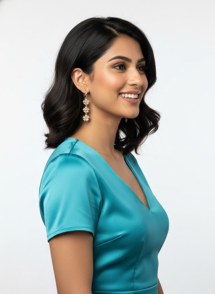 Expertly crafted, these earrings feature sparkling crystal stones that catch the light beautifully, adding a refined touch to any outfit.