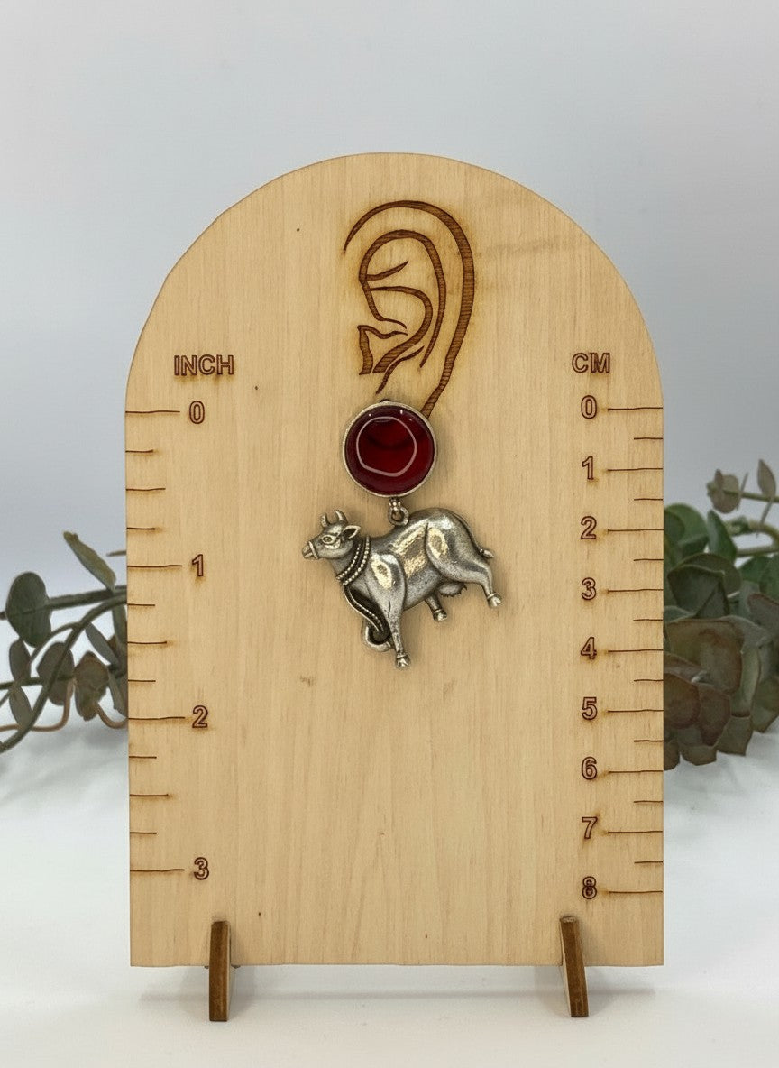 Crafted in oxidized silver, this Hasli necklace set channels timeless elegance through its intricate Nandi motifs—sacred symbols steeped in tradition. The layered design drapes gracefully, creating depth and movement that honors classical jewelry craftsmanship. Perfect for festive occasions or everyday wear that demands presence, this set bridges heritage and contemporary style. An investment piece that ages beautifully, developing character with time.