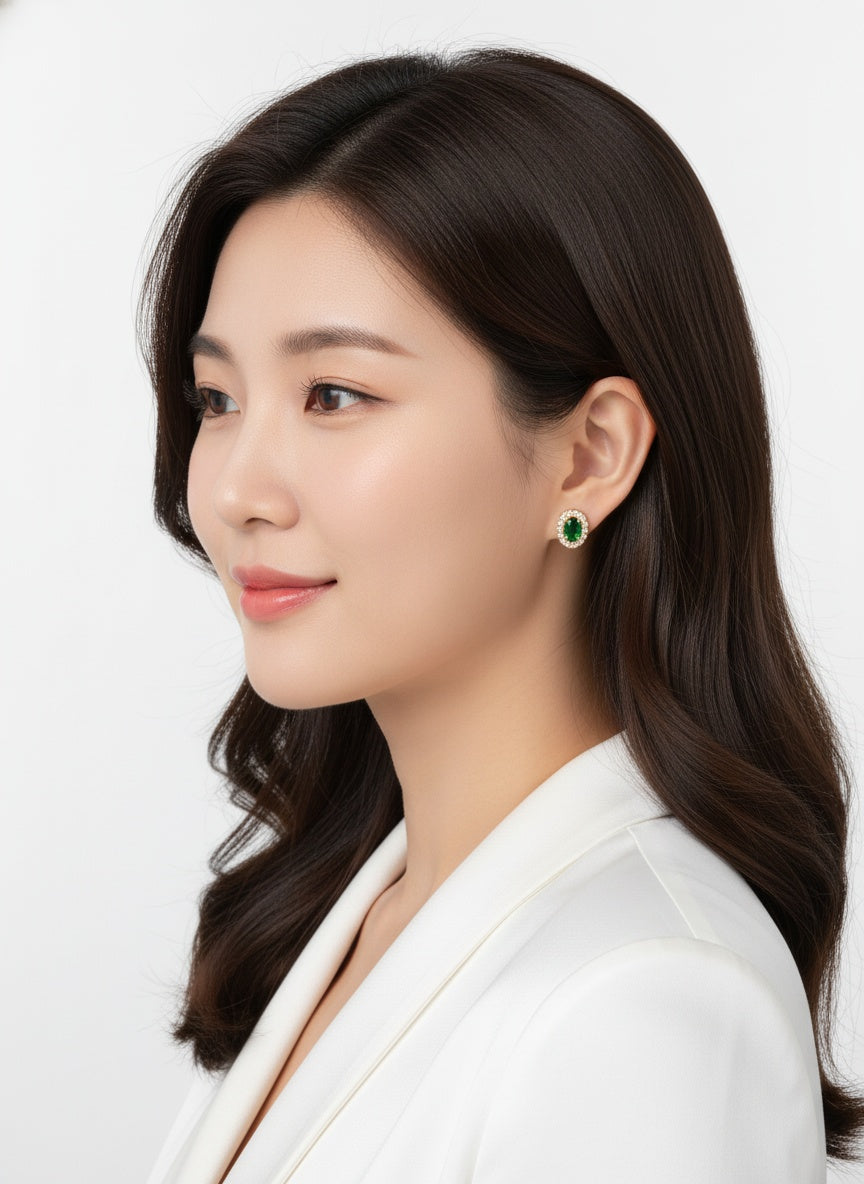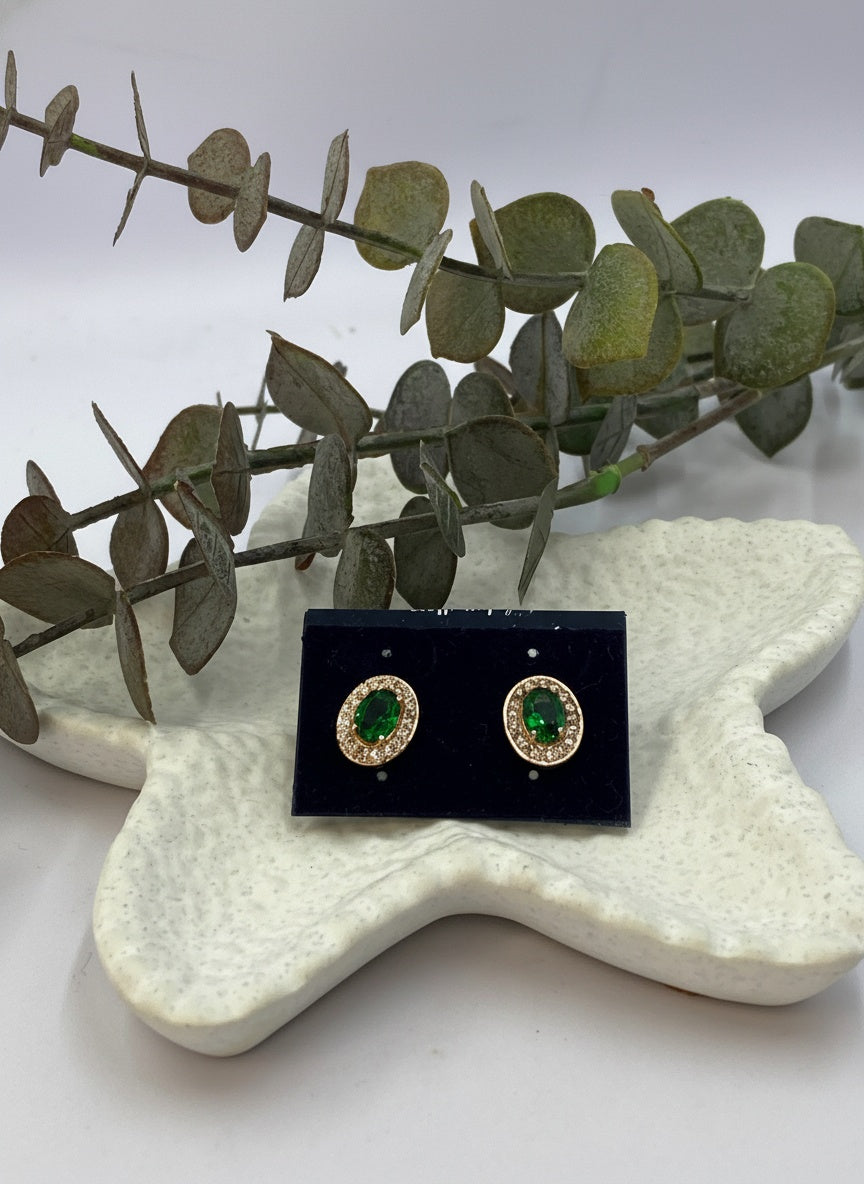 Rose Gold Plated CZ American Diamond Oval Shape Stud Earrings with Green Stones for Women