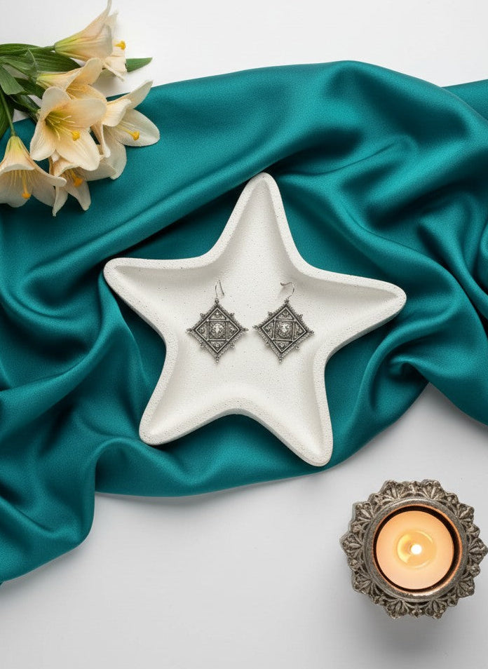 Crafted from oxidized silver, these hook earrings marry vintage charm with contemporary elegance. The darkened patina creates an antique aesthetic that complements both minimalist and maximalist styling. Lightweight and versatile, they transition seamlessly from day to evening wear. The subtle oxidized finish adds depth and character, making them a refined addition to any jewelry collection.