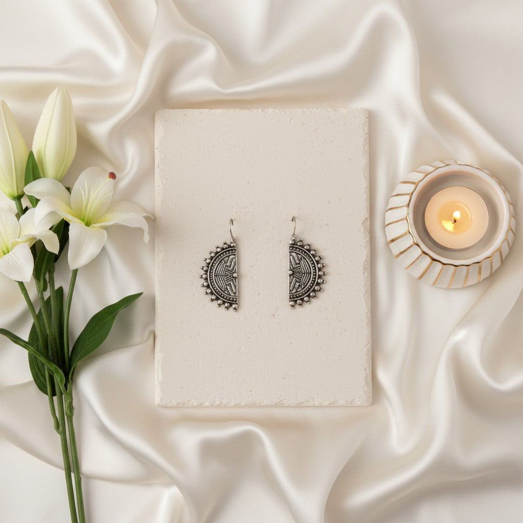 Sleek D-shaped hooks meet moody oxidized silver for an edgy-meets-elegant vibe. These earrings strike that perfect balance between statement and wearable—bold enough to turn heads, understated enough to pair with literally anything. The oxidized finish gives them a vintage-inspired depth that feels way more interesting than standard silver. Perfect for stacking, layering, or wearing solo when you want to keep things cool and minimal.