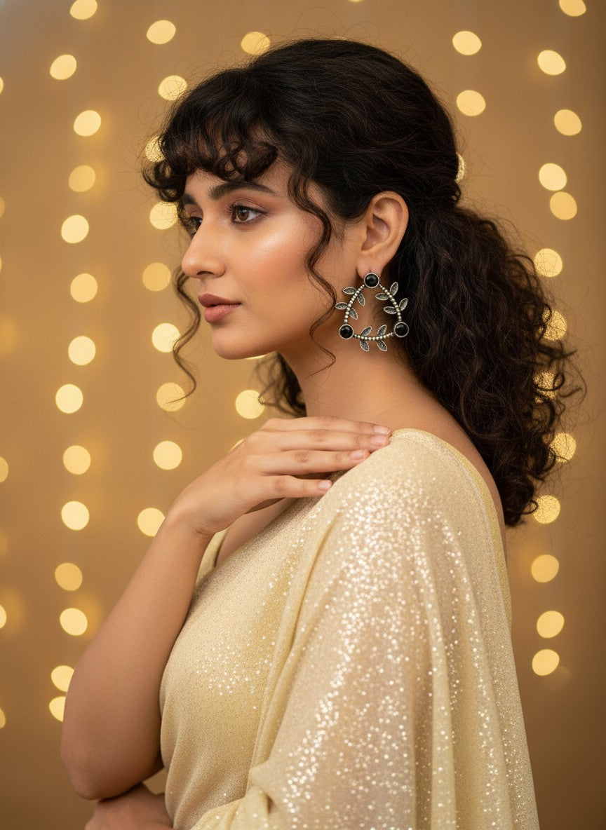 Striking geometric forms meet nature's elegance in these oxidized silver earrings. Bold leaf-inspired patterns create sharp, architectural lines that catch light with every turn of your head. The darkened silver finish adds an edgy sophistication—perfect for those who refuse to blend in. These statement pieces demand attention while maintaining an understated cool factor. Wear them to elevate minimalist outfits or layer with bolder looks for maximum impact.