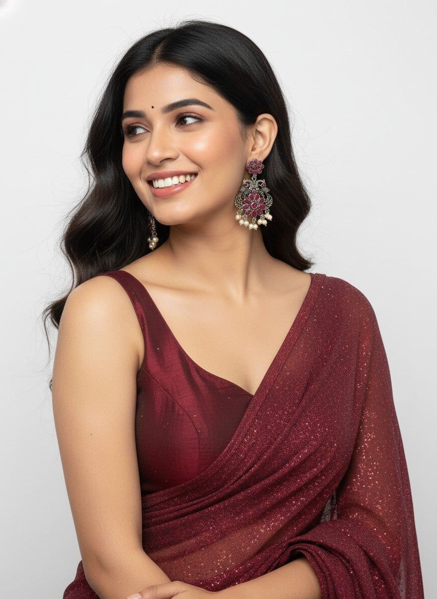 Silver Oxidized Peacock Dangler Earrings with Stone and Pearls Embrace timeless elegance with these exquisite, oxidized silver peacock earrings. Crafted with intricate detailing, each piece features a majestic peacock motif adorned with lustrous pearls and carefully selected stones. The oxidized finish lends an antique charm while the dangling design creates graceful movement with every wear. Perfect for festive occasions, weddings, or adding a touch of heritage-inspired sophistication to your everyday ensemble. A versatile treasure that celebrates traditional craftsmanship and contemporary style.
