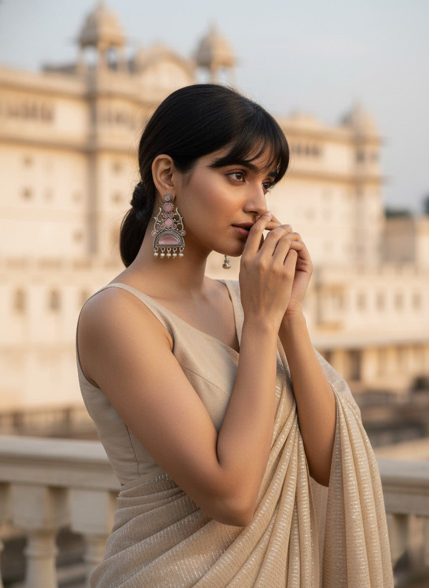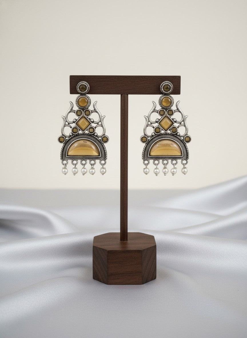 Celebrate in style with these stunning Silver Oxidized Stone Dangler Earrings. Crafted with oxidized silver for a rich, vintage-inspired finish, these earrings feature beautiful stone accents that catch the light with every movement. The elegant dangling design adds graceful motion and dimension to any festive look, whether you're dressing up for a special occasion or elevating your everyday elegance. Perfect for making a statement while maintaining that coveted premium aesthetic.