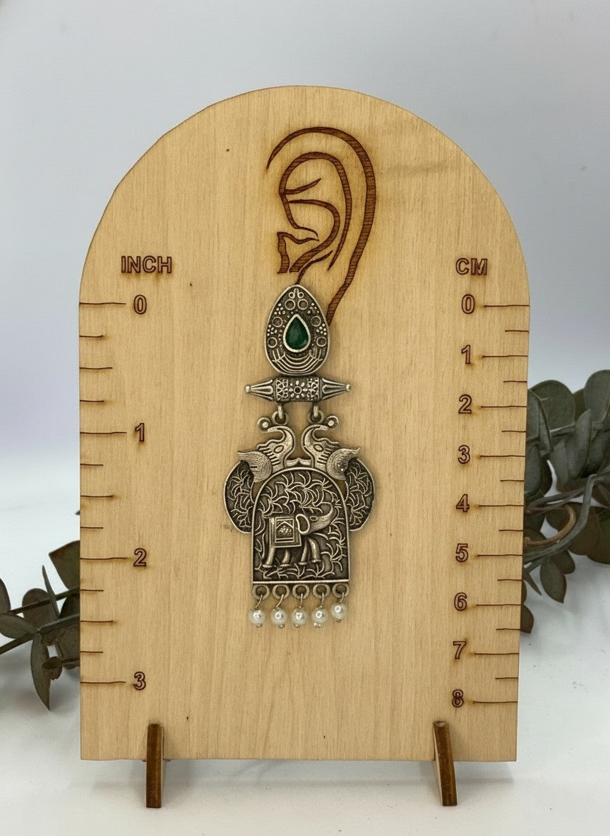 Traditional Silver Oxidized Elephant Motif Dangler Earrings with Stone & Pearl Work